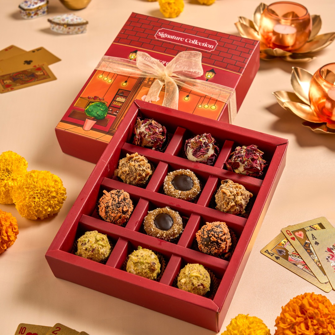 Chocolate orange , hazelnut ,gulkand , pistachio , dates and coconut