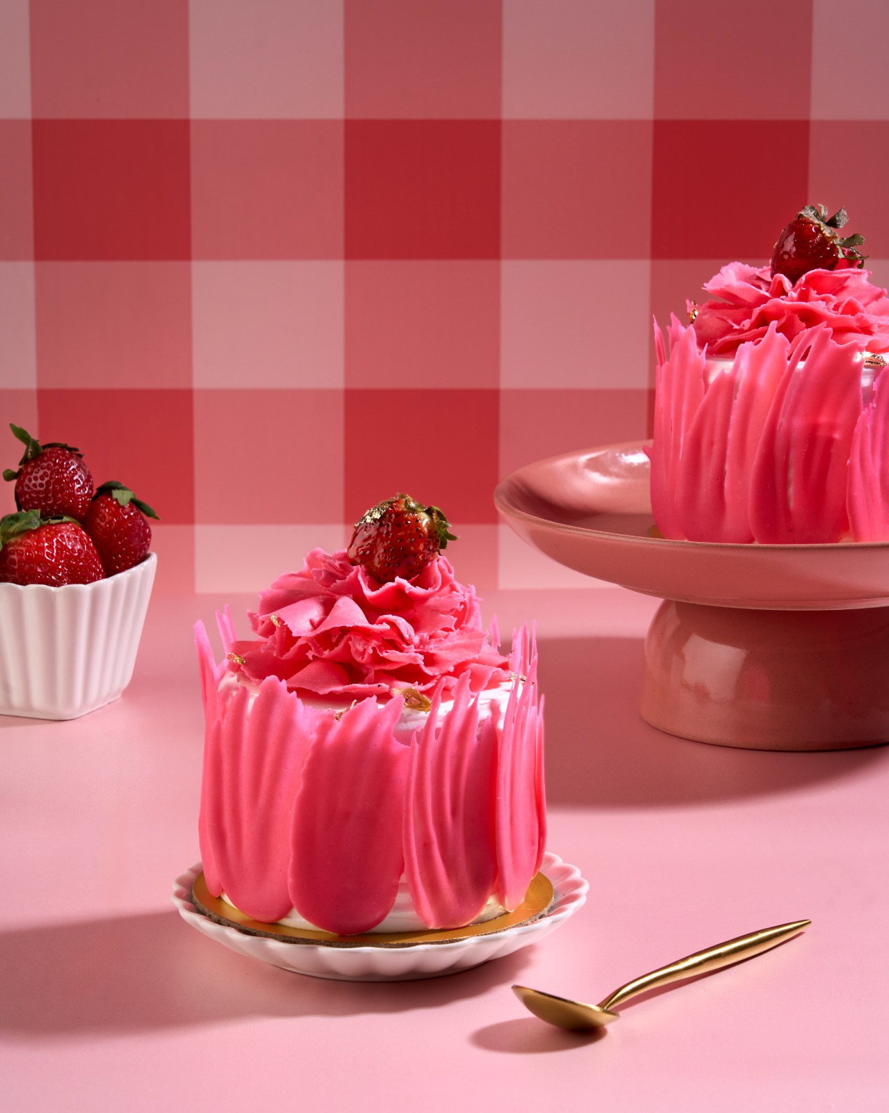 A melt-in-your-mouth fresh cream cake topped with luscious strawberries.